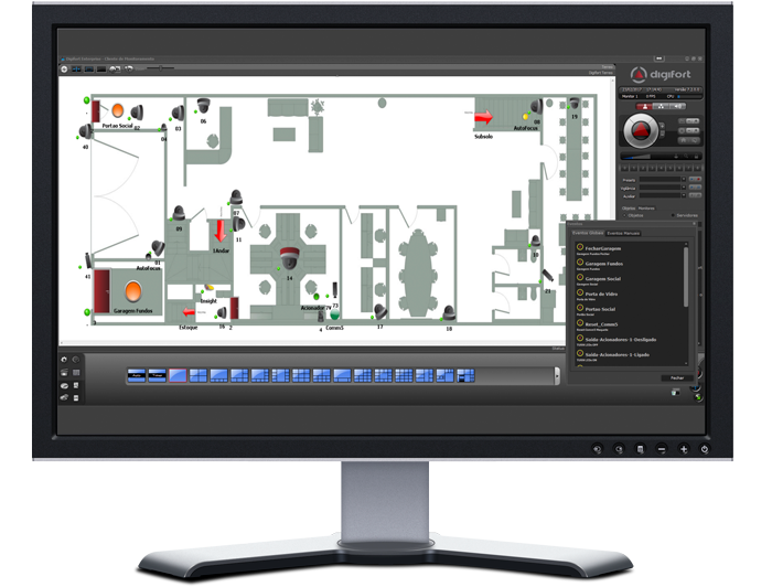 Digifort posee una administración completa de alarmas y eventos, reconoce alarmas de cualquier dispositivo en contacto seco que esté conectado a las cámaras o servidores de video.