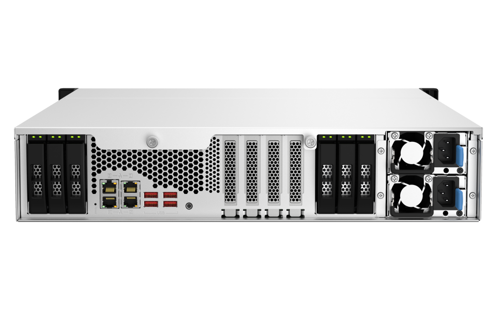 El TS-h1887XU-RP de alta capacidad está equipado con un procesador Intel® Xeon® serie E-2300 de última generación, admite hasta 128 GB de memoria DDR4 ECC y proporciona una arquitectura de almacenamiento híbrido de unidad de disco duro/SSD que mantiene el equilibrio entre rendimiento y coste para ofrecer un rendimiento fiable de categoría de servidor. Con el sistema operativo QuTS hero basado en ZFS, el TS-h1887XU-RP destaca la integridad de los datos con la deduplicación de datos en línea, instantáneas prácticamente ilimitadas, SnapSync en tiempo real y QSAL (QNAP SSD Antiwear Leveling), ofreciendo una solución de almacenamiento ideal que responde a las necesidades empresariales actuales para servidores de archivos, servidores de virtualización, VDI y copia de seguridad/restauración.