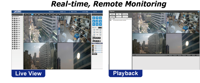 Se puede acceder al vídeo del sistema HDVR con navegadores web y dispositivos móviles. Con el monitoreo remoto, puede ver videos en vivo y grabados, lo que permite un monitoreo más fácil de sus implementaciones de video y la capacidad de reaccionar rápidamente a alarmas y eventos.