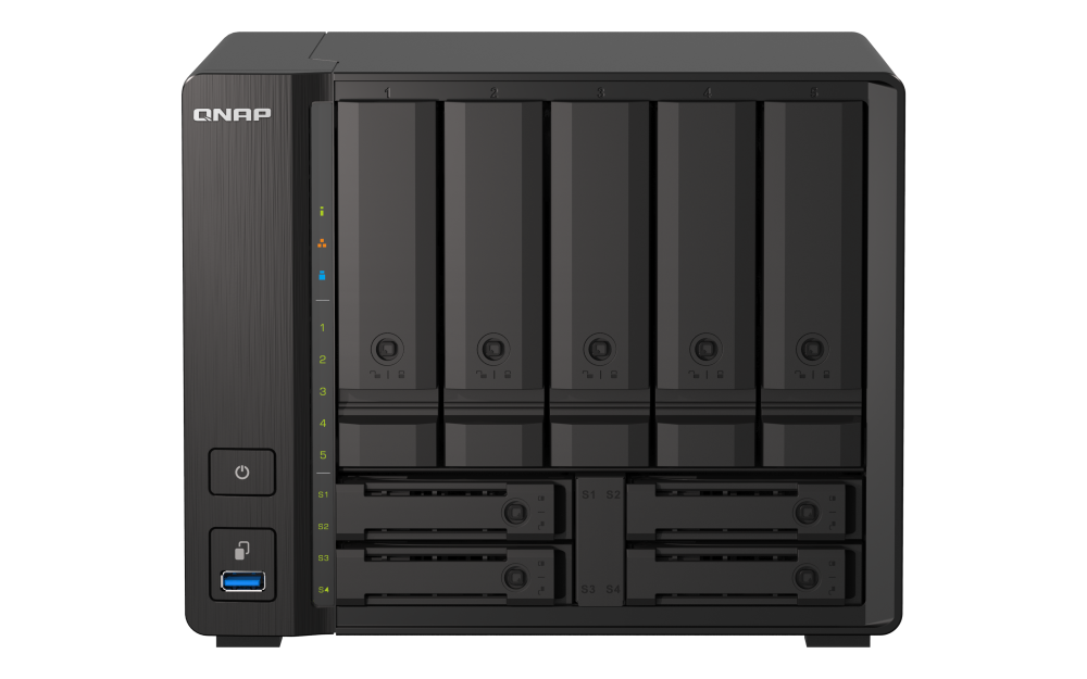 Mejore la productividad de su empresa utilizando el NAS QuTS hero de 9 bahías y cuatro núcleos que admite SSD NVMe U.2 y conectividad 10GbE/2,5GbE